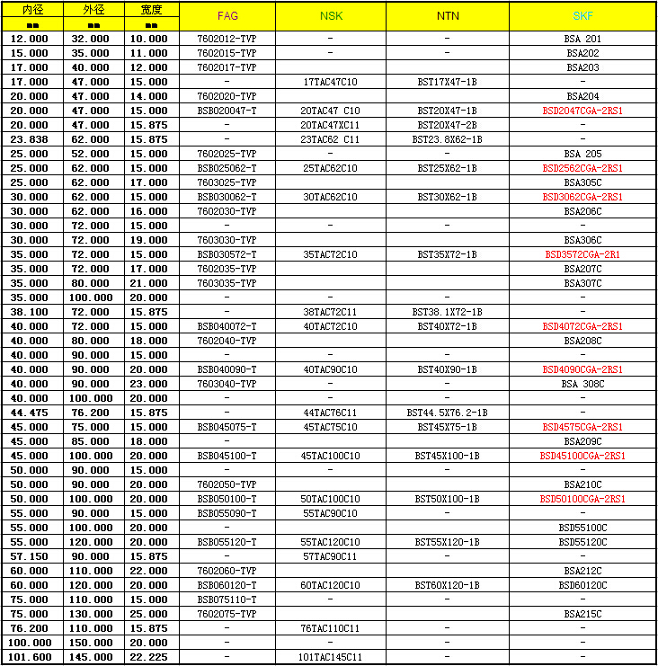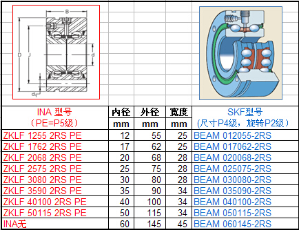 機(jī)床絲杠支撐軸承INA-SKF互換表