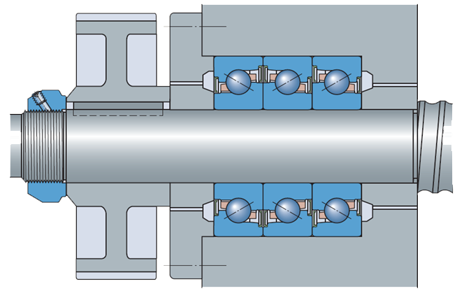 軸承不可分離,接觸角為62°。兩套圈上溝道和擋肩間的過渡半徑經(jīng)過磨削加工。這使邊緣應力降低了大約30%,使這些軸承比普通設計軸承能夠更好的承受重的軸向載荷和偶爾的過載。所設計的單向軸承只能在一個方向上承受軸向載荷,因此要與第二套軸承組配,或者成組的安裝。這些軸承為標準化的通用配組,一組安裝可以多達四個軸承以實現(xiàn)不同的軸承配置,達到配組軸承組的性能水平。采用的一種獨特的熱處理方法有助于軸承在整個工作壽命期內(nèi)預載荷保持恒定。